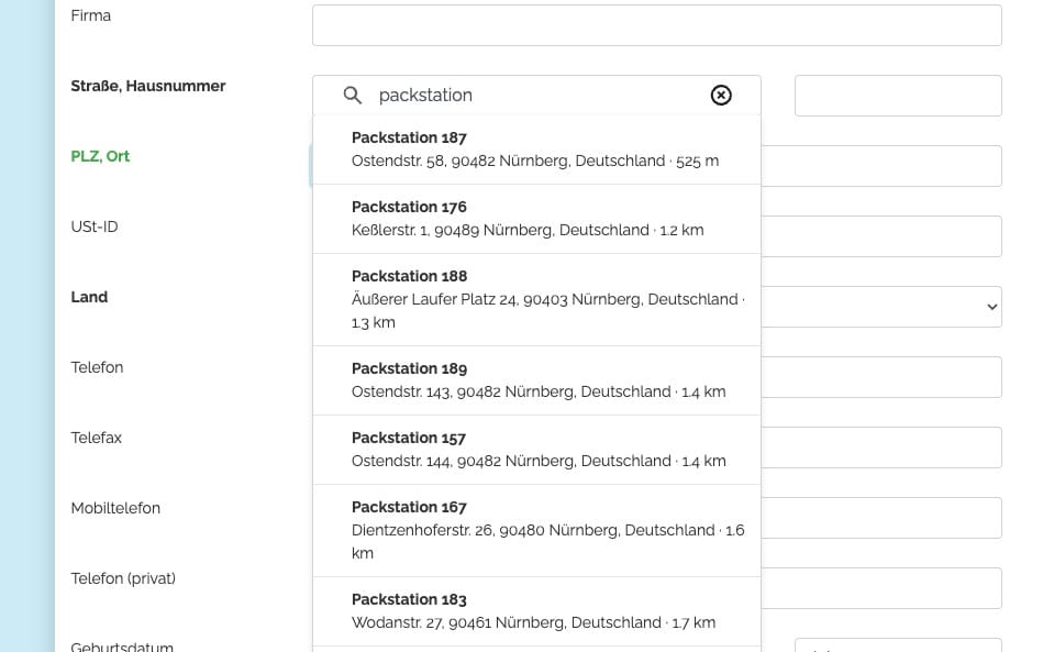 Automatische Erkennung Erkennt automatisch Packstation/Postfiliale-Adressen
